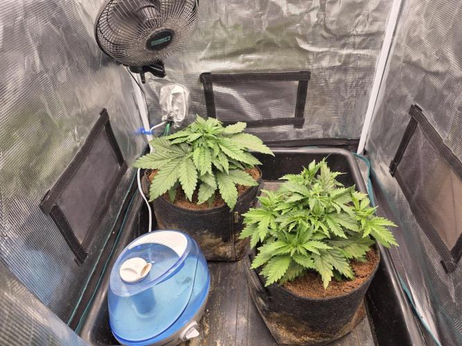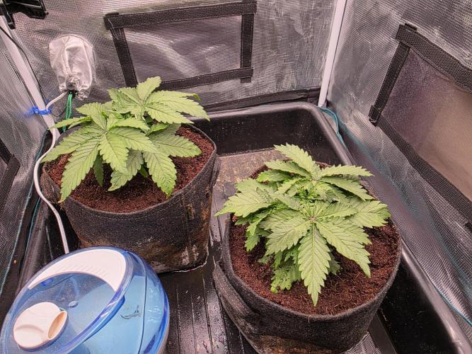 RandyMarsh420 This week I increased the nutrient strength to 0.8 EC and raised the light intensity to 600 µmol/m²/s. Temperature stayed steady at 27 °C with 70% humidity. Both plants responded well to the higher nutrient levels. One of them is slightly smaller, but that’s only because it took a bit longer to sprout. Overall, they’re both growing nicely and looking healthy. I’ll be replanting them into their final pots soon.