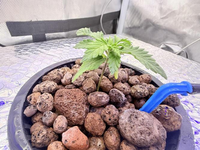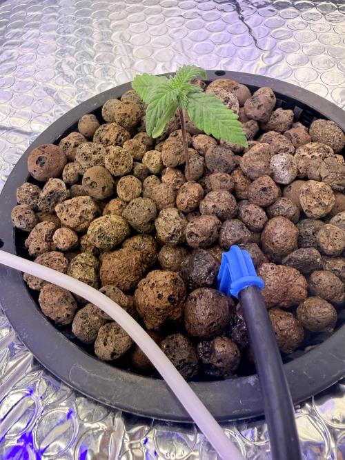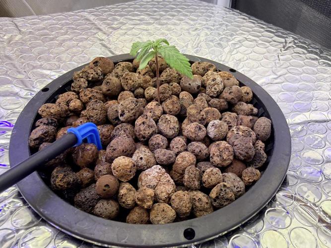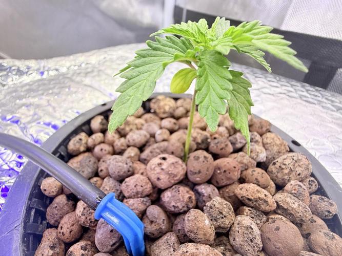Enki_Weed Meine beiden Early Skunk Babys sind nach der Keim- und Boost-Phase endlich in ihre High-Tech-Wohnung, die DWC-Anlage, umgezogen. Sie planschen jetzt ganz offiziell in der Nährlösung und beginnen ihr Leben als echte Hydro-Superstars.