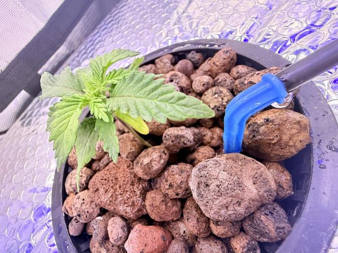 Die Kleinen sind keine Waisen, sie haben ein Luxus-Apartment bekommen: In Steinwolle eingewickelt und umgeben von einem Meer aus Tonkugeln. Ihr erster Tag begann mit einem 12-stündigen Wellness-Bad in Plagron Seed Boost bei einem pH-Wert von perfekten 5,9. Da war klar, die haben das Zeug zum Superstar!