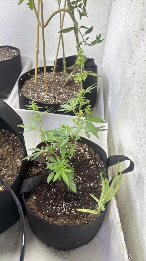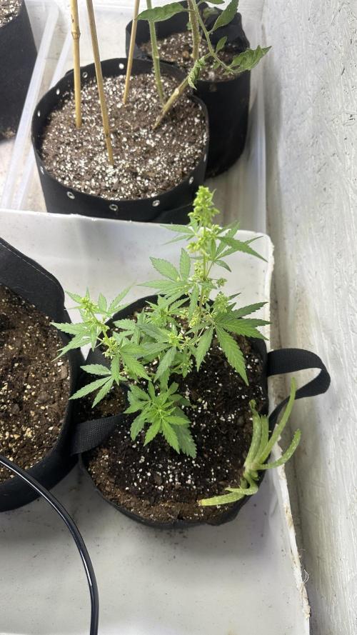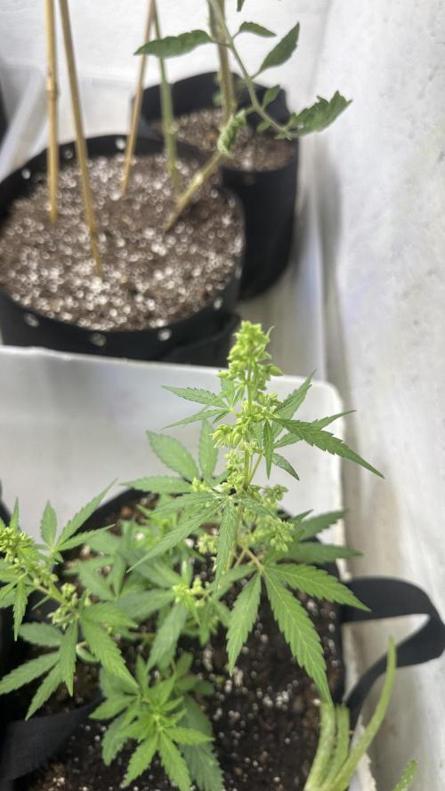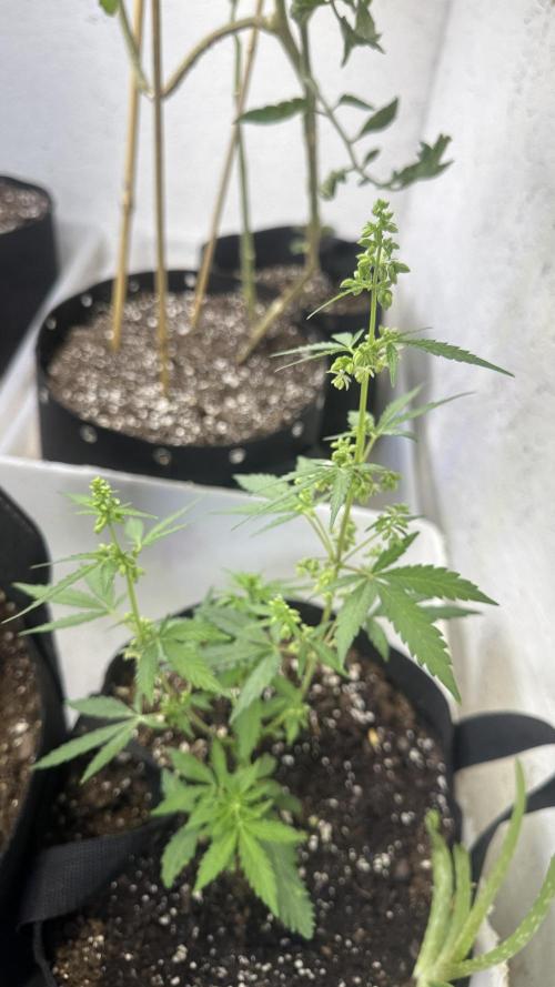 DabMansGenetics Got another purple glue that’s a female along with a Dutch passion mixed indoor seed and one of my fast flowering strains I made called flaming gun. https://justcannabisseed.com/weed-seeds-shop/flaming-gun-fast-cannabis-seeds/ Is the link to buy the fast flowering strains. All of them look to be female since switching to flower. Flipped them while really small because this is just a test run of anew grow setup. Have tomatoes and aloe Vera and apple trees and everything seems to be doing great.