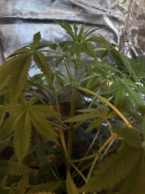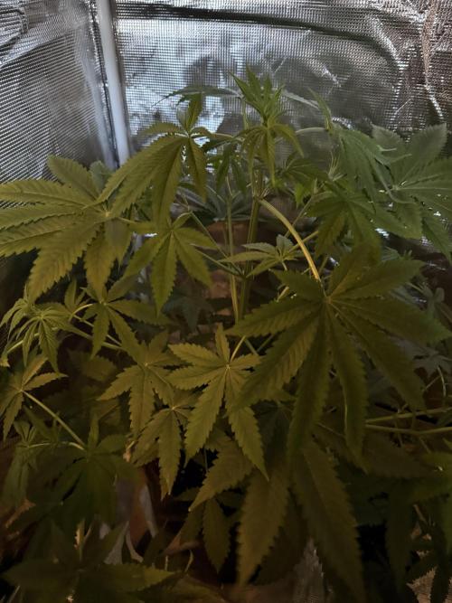 Keeping her watered and nutes on point. No issues or deficiency right now thankfully. No pest issues either. The only thing I worry about is the humidity swings I have been dealing with in this tent. I am hoping I can get better airflow somehow soon. I may end up moving this tent downstairs where the air is cooler. That may help. Don't want mold or rot when she flowers happening!