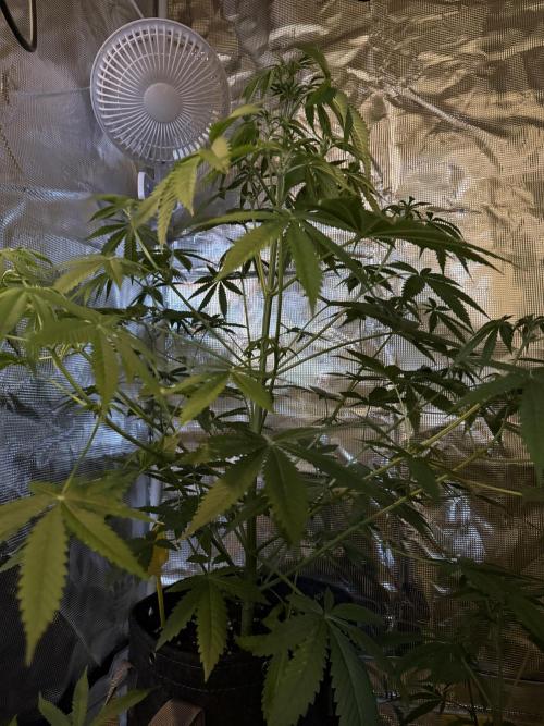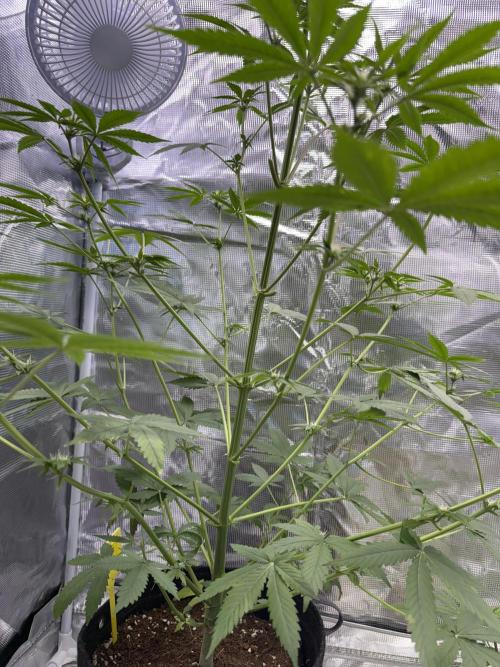 Keeping her watered and nutes on point. No issues or deficiency right now thankfully. No pest issues either. The only thing I worry about is the humidity swings I have been dealing with in this tent. I am hoping I can get better airflow somehow soon. I may end up moving this tent downstairs where the air is cooler. That may help. Don't want mold or rot when she flowers happening!