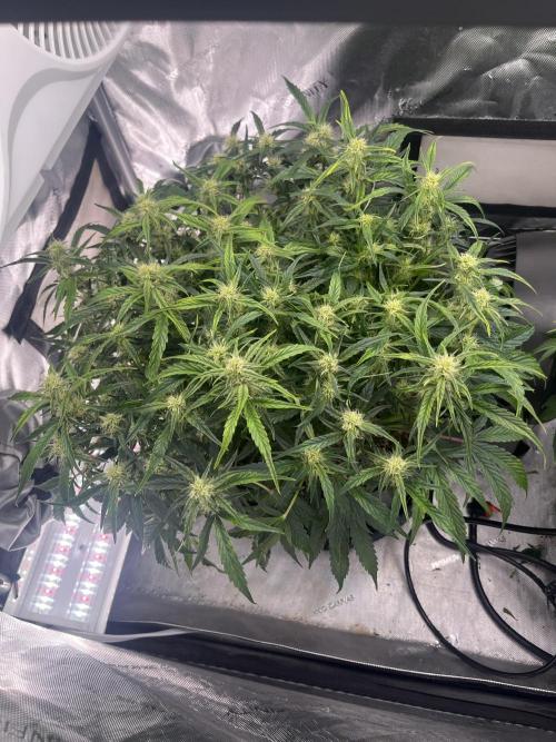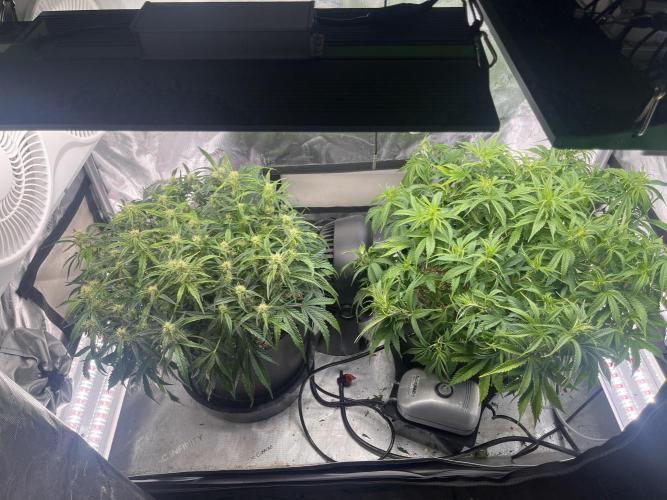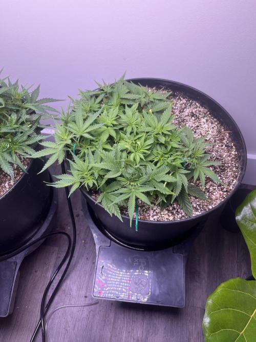 frostytips I ended up realizing that i didn’t have enough of the lotus nutrients and thought it would be best to start a new line as early as possible. i went with the aroura innovations soul player pack, as i got it half off. it is semi organic so that is a little different but all seems well. i am having an issue with the ph in my autopot resivour raising 2 ph in a couple hours, i may just let it go and see if maybe it is something weird organically happening that sorts itself out. i also have some lactic acid bacteria that i may also use to continuously lower ph or atleast buffer. plants are exploding and the autopot is officially on! the wedding cake was topped 5 days before the pictures today, and the apple strudel 1 day after. light was also increased to around 750 at the top, giving a dli of 51.
