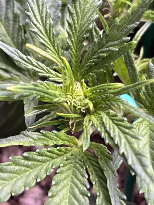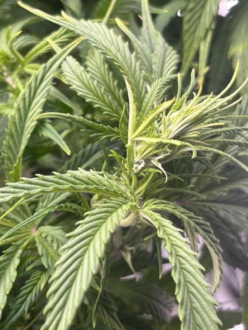 frostytips not really sure what is up with the leaf’s wrinkle going on with the wedding cake, also has anybody seen a a plant shoot a leaf missing the middle pedal, and no lower flowering site?