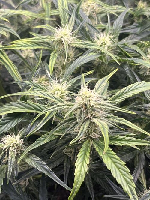 frostytips both have really taken off, the wedding cake has some signs of seeds forming which is unexpected, i have inspected and i don’t see any anthers, but quite a few pistils are orange and swelling bracts, i dissected some and found what i thought was a swollen ovule. i’ll keep me eye on this. a little upset if it is a hermie, but i would say no to nature's infinite seed glitch. the other possibility is the soil environment being too alkaline which i have left unsolved because of the lack of leaf burn. i’ve read that high alkaline soil can push flowers quicker and turn some pistils brown early, we will see.