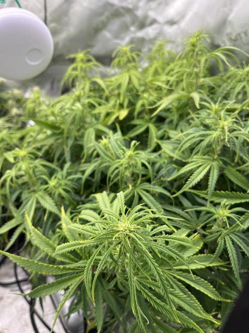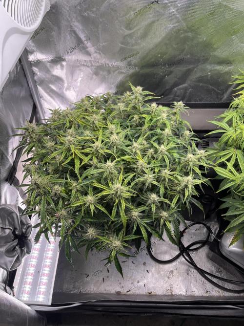 frostytips I ended up realizing that i didn’t have enough of the lotus nutrients and thought it would be best to start a new line as early as possible. i went with the aroura innovations soul player pack, as i got it half off. it is semi organic so that is a little different but all seems well. i am having an issue with the ph in my autopot resivour raising 2 ph in a couple hours, i may just let it go and see if maybe it is something weird organically happening that sorts itself out. i also have some lactic acid bacteria that i may also use to continuously lower ph or atleast buffer. plants are exploding and the autopot is officially on! the wedding cake was topped 5 days before the pictures today, and the apple strudel 1 day after. light was also increased to around 750 at the top, giving a dli of 51.