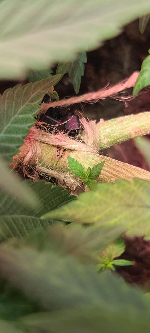 Potgoblin So this is going to be the last week of veg for my ladies and I think ill be flipping by Wednesday "ish". A fair bit has happened in the last week, I managed to split the main stem.of the dark phoneix the other day being a bit too rough with her, thankfully the split went straight down the middle.and didn't even make her droop or wilt at all, 2 cable ties and some.string and she's right as rain again lol. Really want that break to heal before flipping her so I can get those cable ties off the main stem before the stretch! Last thing I want is her growing into them and making it impossible to remove.