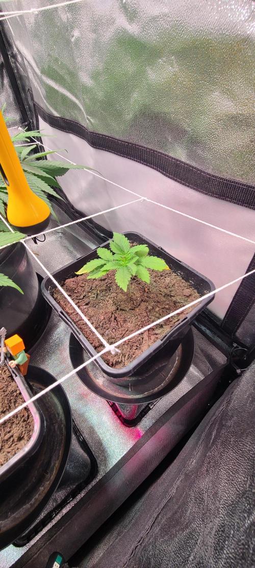 To try and fill the front of the tent with something different I've got the small ladies, Grandaddy Purple Fem on the left in the baby pot, the Milky Way F1 Autoflower from RQS in the Middle and finally a Bruce Banner Fem on the Right, these girls are all about 2 weeks old from seed and have so far being growing fast and evenly with minimal issues apart from some slight paleness on the lower leaves of the fems which hasn't spread since starting with the formulex. They will be finishing their life in 3L pots as I need to flip to flower soon before the Phoenix grows too large, so only the GDP is left to Re-Pot 👍