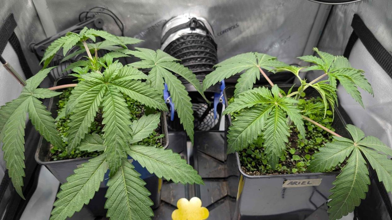 Both plants are thriving in the substrate. They have been topped, keeping the three strongest upper nodes. The light is now set to 390 µmol/m²/s.