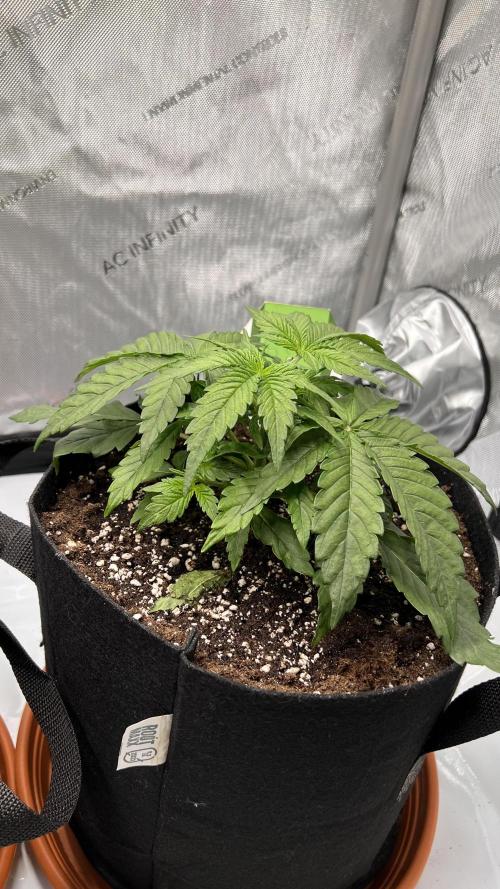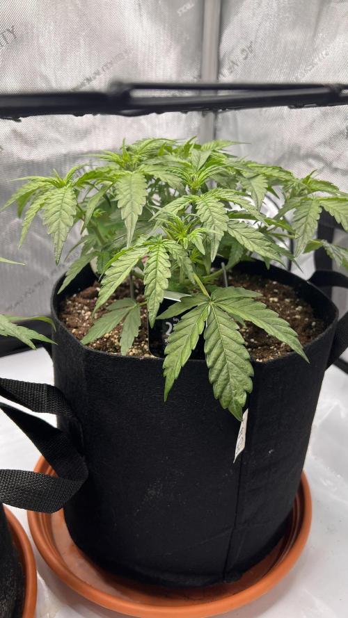 Growtendo64 Miss Frostina sprouted strong and healthy, showing no signs of stretching. Early feedings with Root Juice helped her establish a solid root zone. By day 7 the first true leaves appeared, marking a smooth start into the vegetative stage.