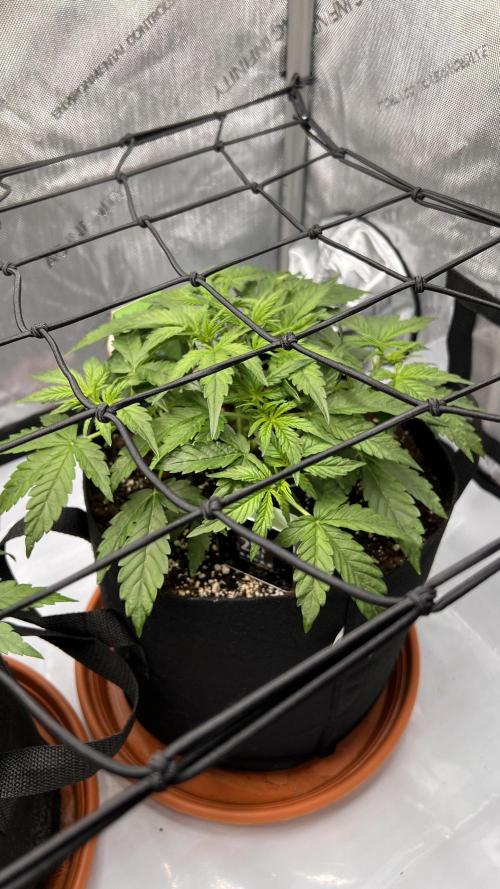 Growtendo64 Miss Frostina entered her third week with strong growth and a compact structure. Nutrients were gradually increased toward the full schedule, and she handled the feeding perfectly — deep green leaves and no signs of stress. This week she was topped and lightly defoliated to open up the canopy, and she bounced back quickly with healthy new shoots. The roots and structure look solid, setting her up nicely for the coming training phase.
