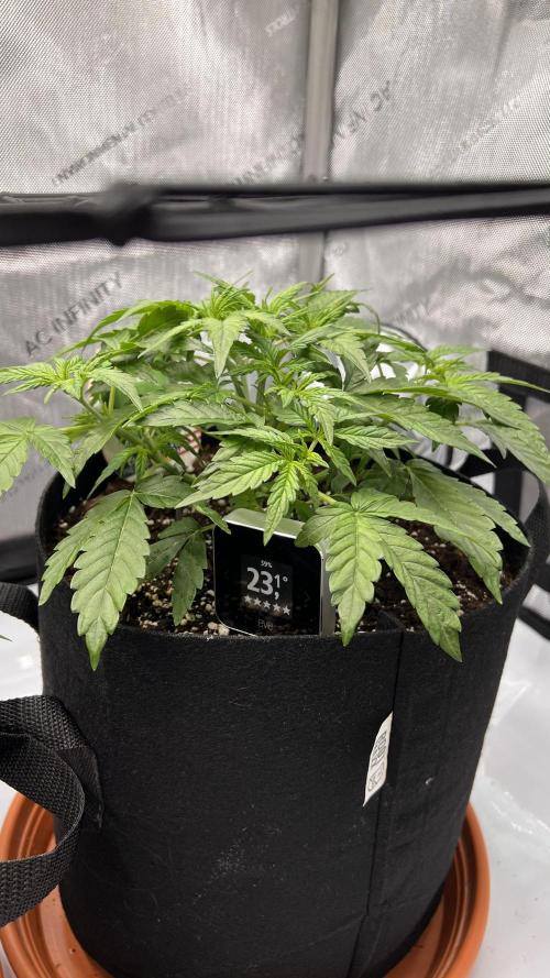 Growtendo64 The seed popped and Miss Frostina showed her first leaves. She’s in an 11L fabric pot with BioBizz Light-Mix under the SF-1500. From now on the diary starts.