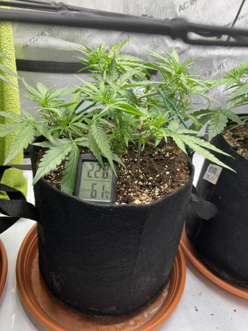 Growtendo64 Miss Titanica broke through the soil and looks strong from the start. Her first leaves opened nicely, staying compact and healthy green. She’s adjusting well to the light and early watering routine.