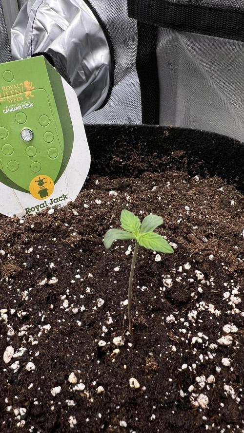 Growtendo64 The seed popped and Lady Hazel showed her first leaves. She’s in an 11L fabric pot with BioBizz Light-Mix under the SF-1500. From now on the diary starts.