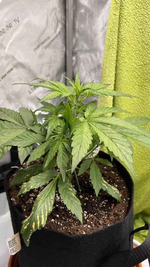 Growtendo64 Lady Hazel kept growing fast this week and started showing her first pistils, marking the beginning of flower. I slightly increased the nutrients while still following the veg schedule. A few small yellow spots appeared on the upper leaves — likely from low air circulation and moisture on the leaf surface combined with light stress. After improving airflow and adjusting light distance, the new growth looks clean and healthy again.
