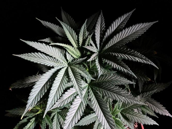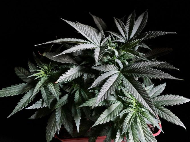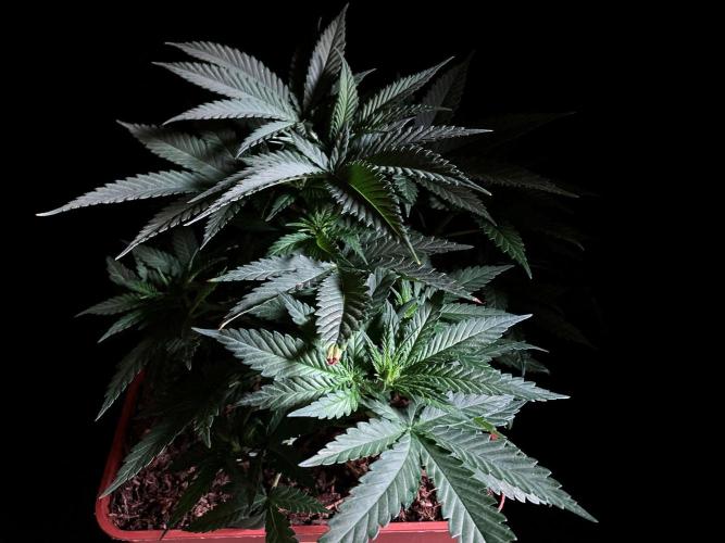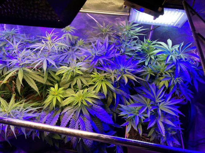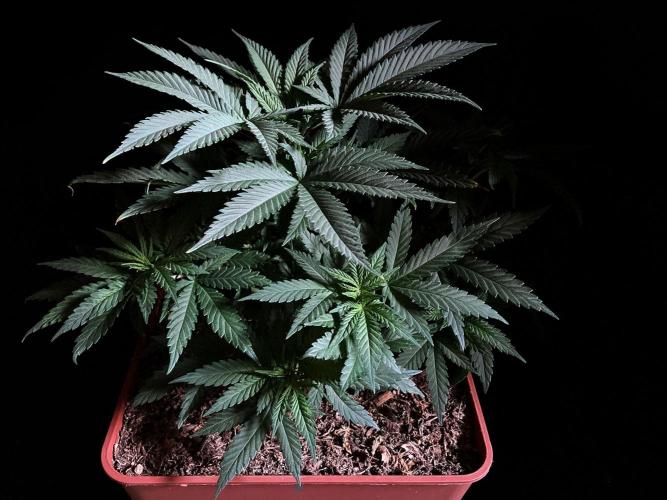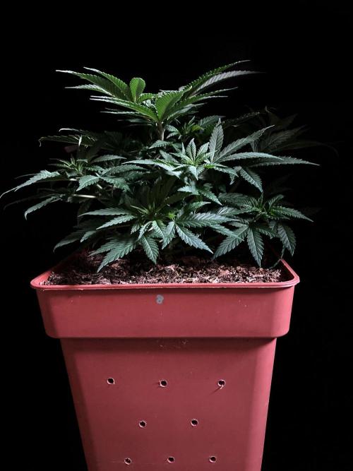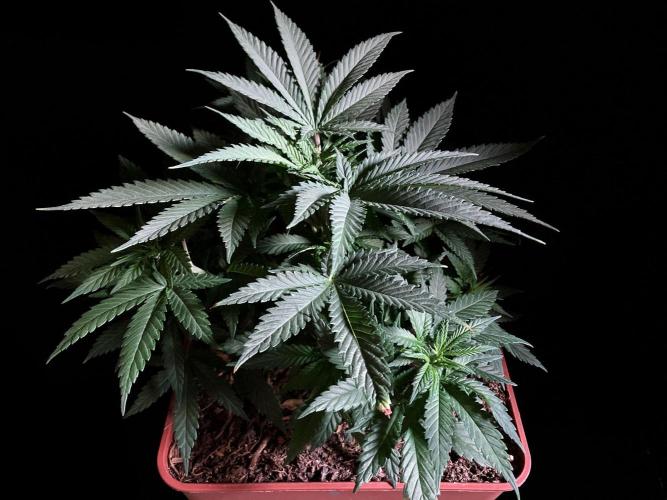 De momento mantengo la planta con 21 horas de luces blancas y azules para promover la compactación y la ramificación.