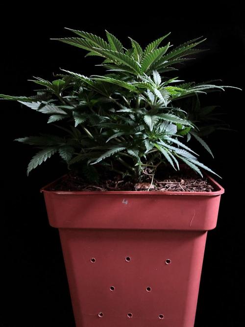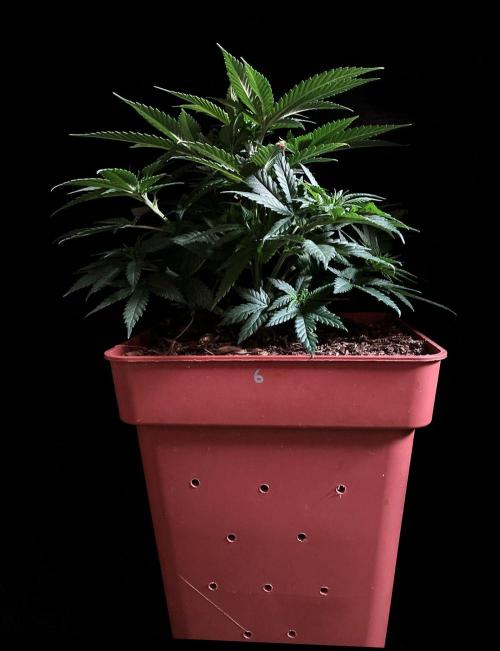 La planta se esfuerza por establecerse en la maceta, pero esta semana han habido problemas provocados por este insignificante y despistado cultivador de marihuana clandestina, hace seis días que preparé una mezcla de riego especial para mis mayores plantas, pero no para esta, ya que a todas las grandes les había hecho el corte apical días antes, lo que pretendía con la mezcla de riego en la que incluí auxinas era promover el movimiento de esta hormona hacia las ramas secundarias después del corte apical, al tiempo, las auxinas en riego ayudan al desarrollo de la raíz de anclaje, bueno el caso es que regué la pequeña Txerri Bilbo con esta mezcla, que además incluía una concentración de minerales demasiado alta para la edad de la planta, el caso es que varias hojas comenzaron a presentar síntomas de problemas, ya los había visto antes por exceso de hormonas auxinas, bueno ayer para corregir el problema regué abundantemente y sólo con agua de manantial, para aliviar mediante lixiviación la concentración de la hormona en el sustrato, la planta se va a recuperar, de hecho las nuevas hojas y brotes crecen sin señales... espero que la sobredosis de hormonas promueva las raíces que tanto me interesan, no obstante voy a hacer el corte apical esta misma semana.... seguimos en el juego!! 😁