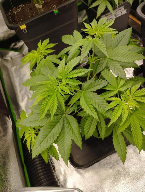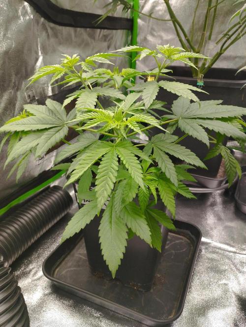 BudBrewerz The Tartare seems to be doing okay, she got moved into the new tent and got potted out in a 7l pot with lightmix. I've had some humidity problems when I just started using the tent in that spot, but it should all be sorted out now.I've started giving the Plagron growing nutrients too.