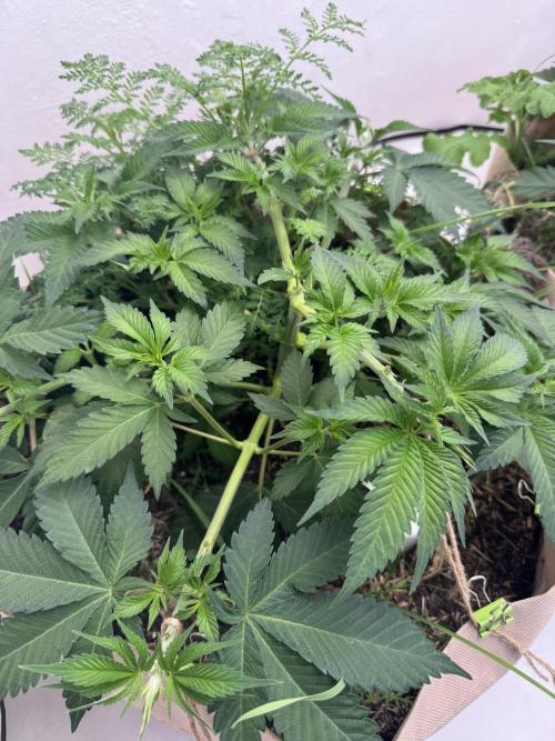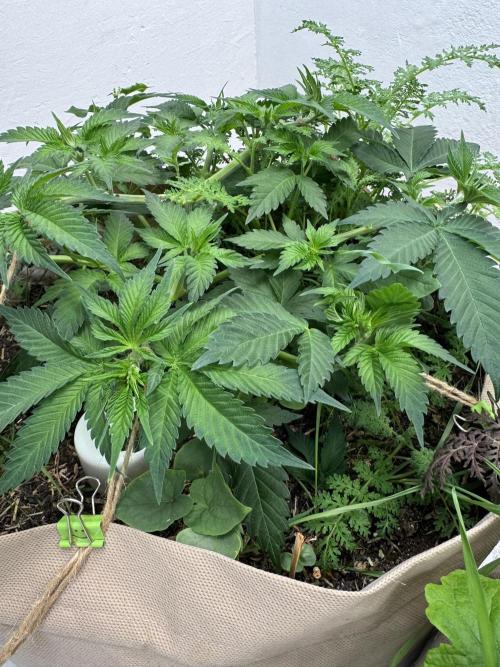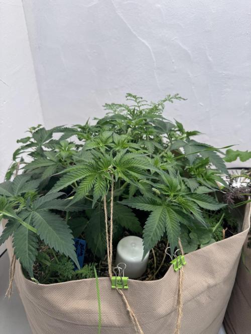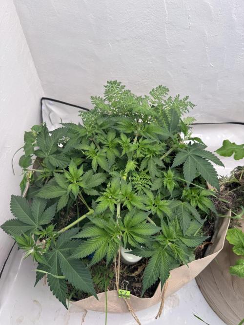 Terp_Djiny Die Pflanze ist regelrecht explodiert über die Woche. Daraufhin habe ich zum Wochenende einen Kompost Tee gebraut und gegossen. Im Anschluss habe ich die Triebe mit Seilen heruntergebunden und ein paar Bkätter herausgeschnitten.