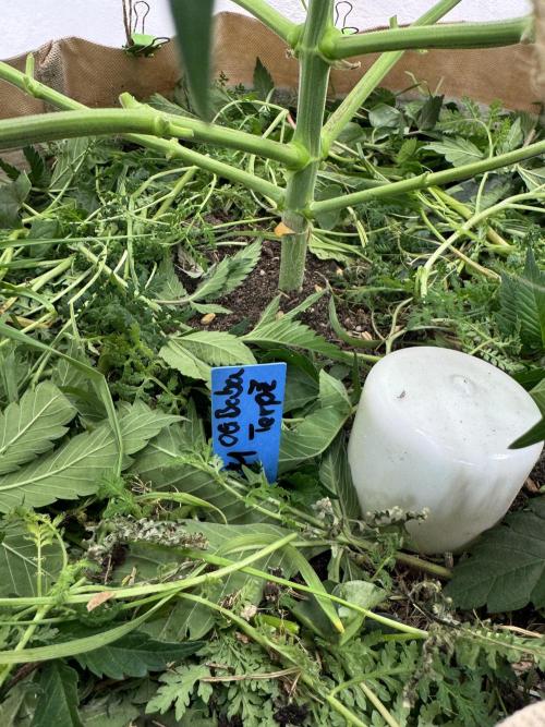 Terp_Djiny Seile spannen und etwas beschneiden stand diese Woche zweimal für die Pflanze auf dem Plan. Gegossen wurde nur mit Wasser um die Erdfeuchte bei 70-80mbar zu halten. Das Cover Crop wächst auch fröhlich vor sich hin.