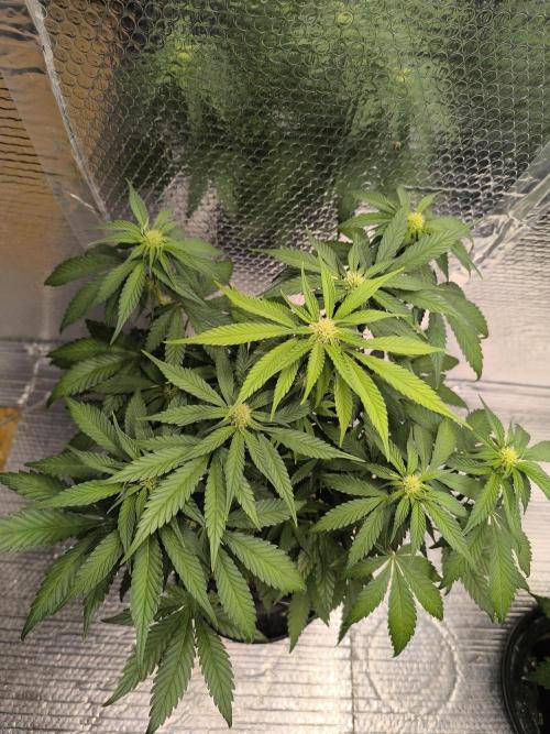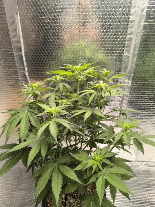 Both plants have officially entered the stretch phase this week. I did some additional LST to keep the plants even and opened up the structure a bit more. A light defoliation was done as well to make sure all the stems are getting plenty of light and airflow. Flowering started toward the end of the week, things are looking strong and healthy so far.