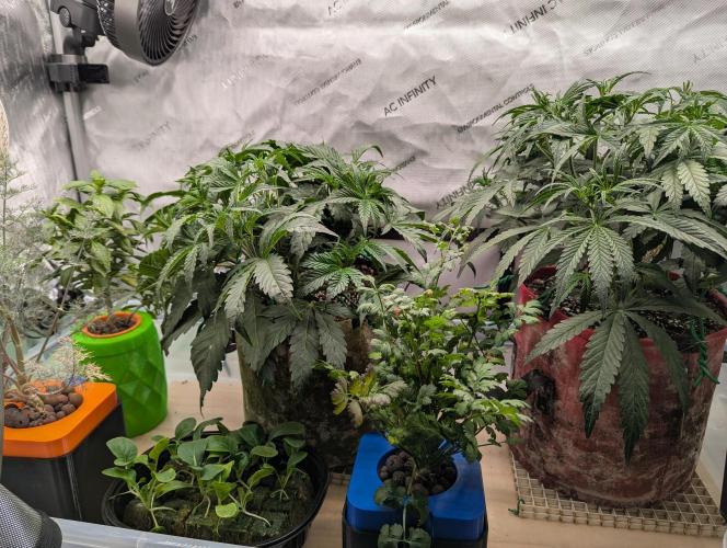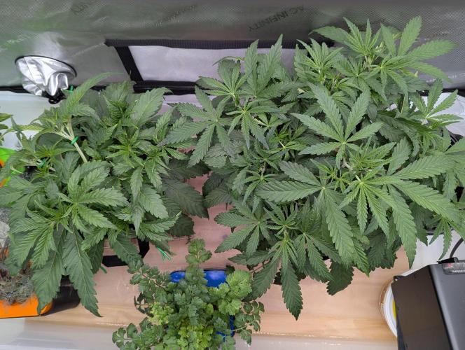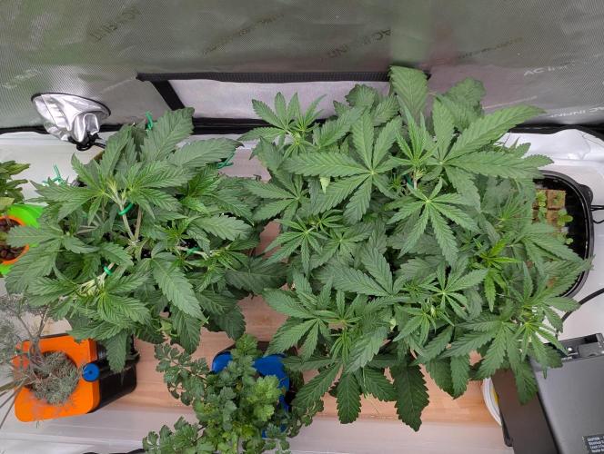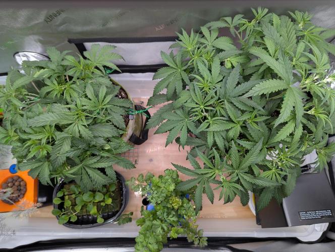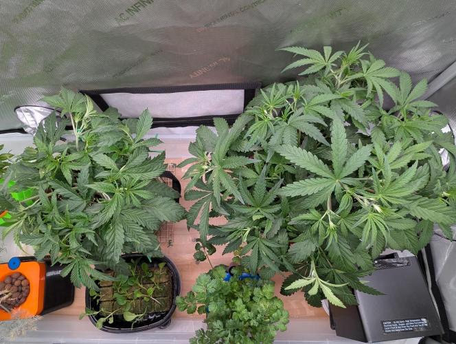 * Bonus pic with additional herbs are being grown hydroponically using the kratky method and same nutrients as our 2 plants. They'll stay in same tent until no more room for them.