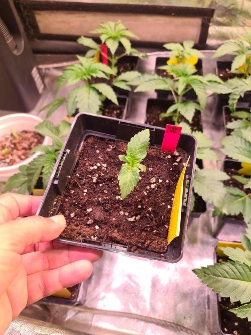 decided to grow two more strains alongside the regs. I am in pretty need for a good sativa smoke, that's why the Golden Tiger from Ace Seeds found it's way in the dirt and a nice Souvenir I brought home from Cannafair in DüDorf.