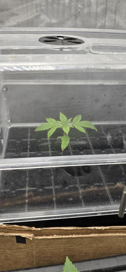 This little thing is quite the champ. She is still going. Just tiny. Same stage too. It's wild. But her leaves are starting to yellow. I'm half tempted to add a little more water to the bottom with a bit of nutrients to see what happens. Just a hint.