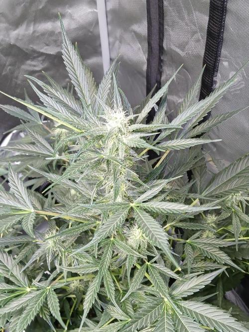 Kyle420greenery @DivineSeeds send to have knocked it out of the ball park with this strain. So far this has been an amazing grow. She's doing her pre flower stretch and really showing out right now I can't wait to see what she does in the weeks to come. She is seeming to have beautiful thick leaves. Strong stems. It has obviously been a strain with a lot of work put into it's genetics because she's a beauty to watch grow