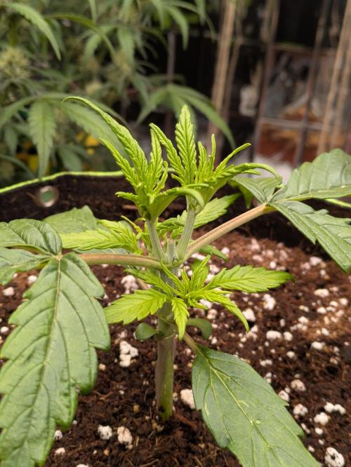Gorillanonymous Day 19 - damn she's growing quick. I topped her last week, and the new shoots are absolutely flying. I have a good feeling she's going to be monstrous. Watered with about 1/2 litre of treated water, see germination page for deets!