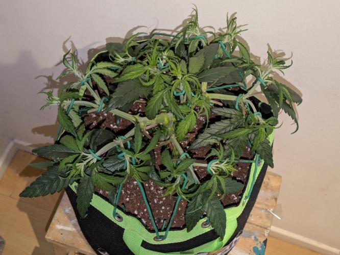 Gorillanonymous Day 19 - damn she's growing quick. I topped her last week, and the new shoots are absolutely flying. I have a good feeling she's going to be monstrous. Watered with about 1/2 litre of treated water, see germination page for deets!