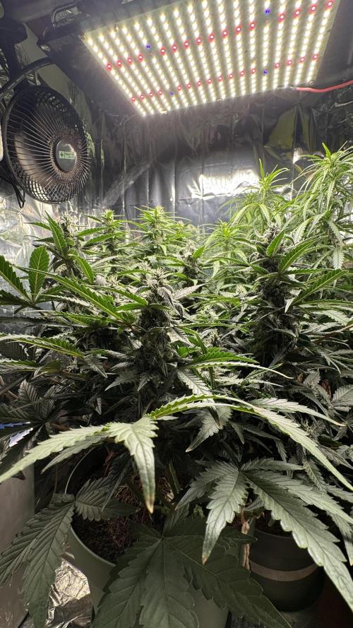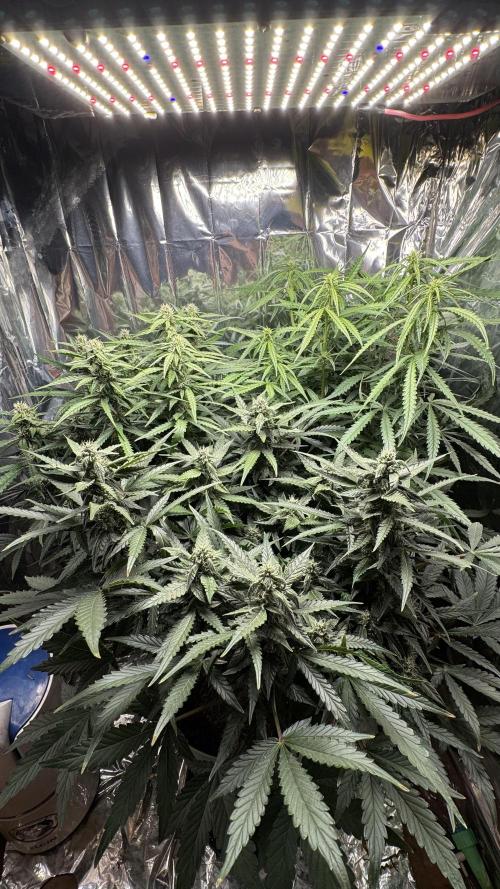 CaduCCCP Registros do dia 17 de outubro de 2025. Avanço na floração. A NL 1 finalmente finalizou seu stretching, já estava quase sem espaço em altura no grow.