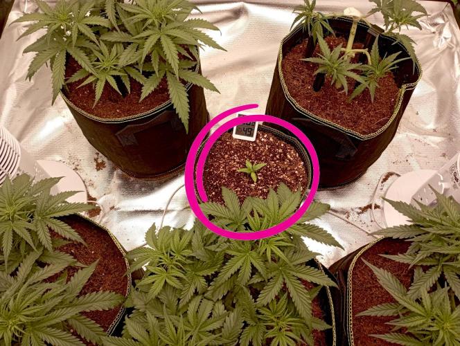I received several seeds as gifts (thanks FB), and I still have some room left in my tent, so I'm adding 1 Banana Purple Punch in an 8L pot.