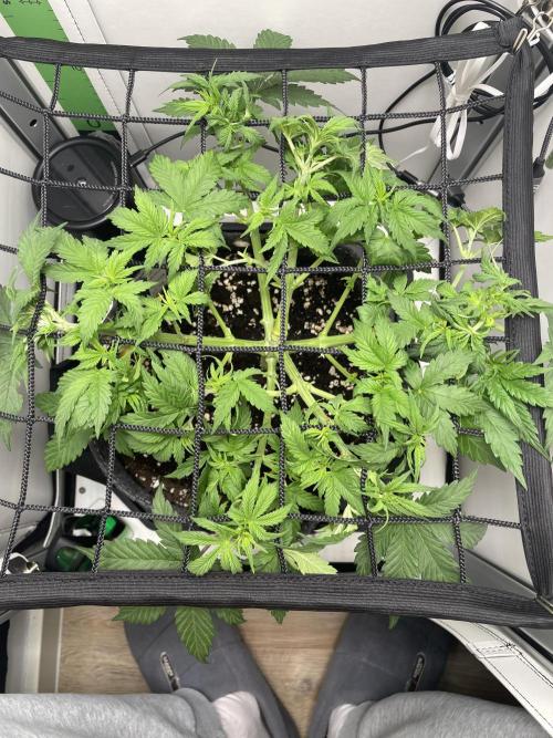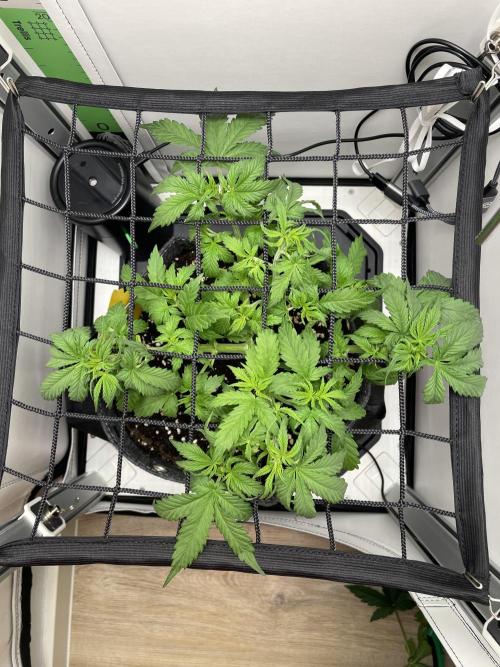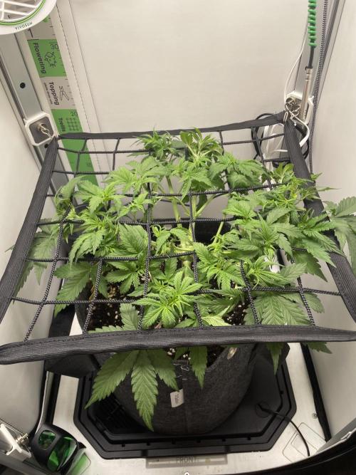 She handled the topping very good. No signs of slowing down her grow or any deficiency. I did some LST after topping but one of the main branches snapped half through. She damaged side still performs exactly like the intact one. I try to be patient and careful with the bending of this branch. I taped the location and try to not bend it hardly anymore.