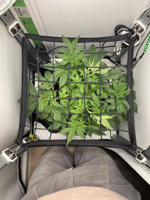 Week 4 was pretty straightforward, holding the branches under the trellis and cutting some fan leafs that giving shadow to the lower branches. There is still no sign of pre-flowering but she gets thirstier over the week. Giving her about 1L from bottom and 1,5L from above every two days at the moment.