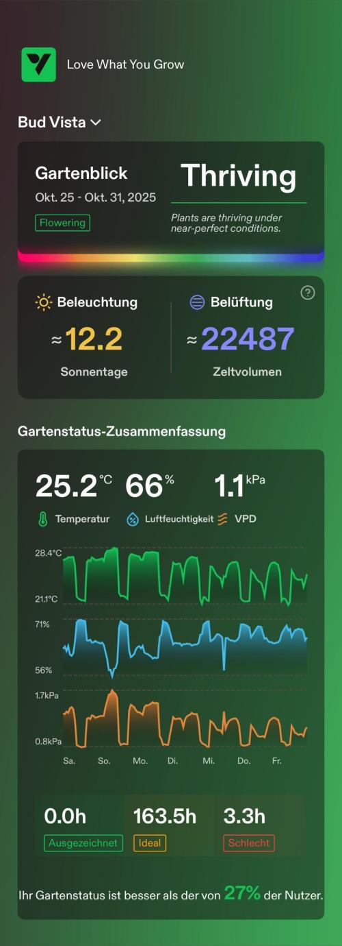 Since the last heavy defoliation 3 days ago she’s handling any stress like a champ. No highs of slowing down growth.