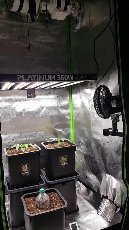 MonstaMurph Nach dem Toppen hat sich die Pflanze schnell erholt und zeigt kräftiges, buschiges Wachstum. Die Seitentriebe entwickeln sich gleichmäßig, und das Blätterwerk ist dicht und gesund.