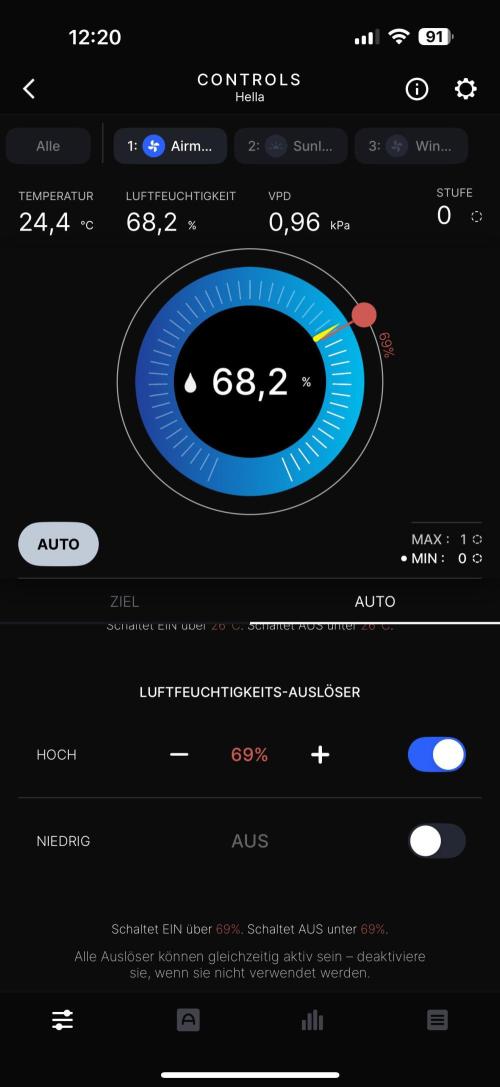 Licht ( eingemessen ) ca. 250 PPFD kommen an.