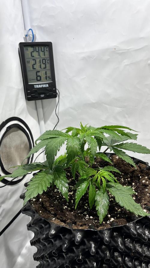 MendocinoGreeno Everything looks fine, the overnight temperatures are a bit lower than I would like but Seriotica will handle it. On the 9th day of vegetation I started fertilizing, with a lower concentration for now. Roots are slowly emerging from the bottom of the pot so in the next 2 days it will be transplanted into the final 12.5l air pots.