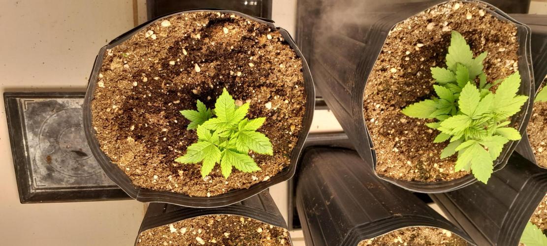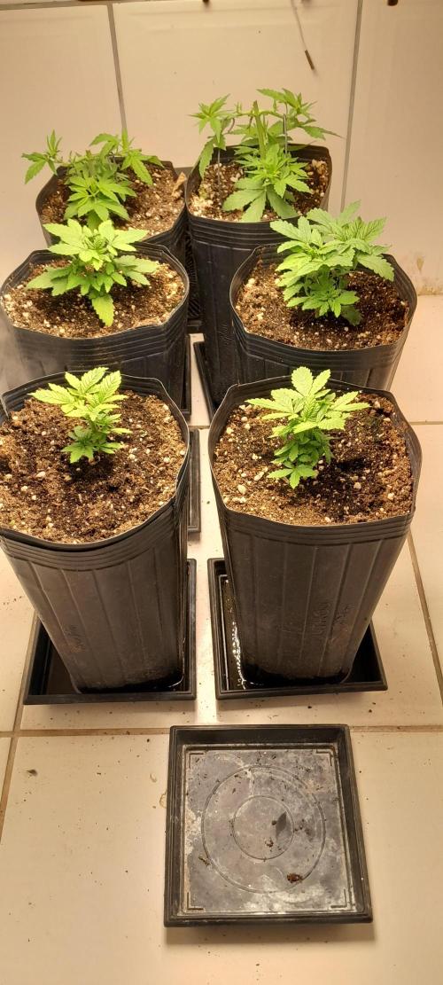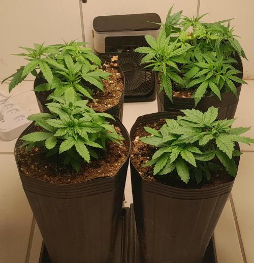 As plantas estão se recuperando bem do transplante agora já nos vasos definitivos de 7 litros. Ainda estava um pouco cedo mas fiz uma poda top , vou precisar para ajustar o ciclo delas com umas auto que iram ficar juntas na estufa.