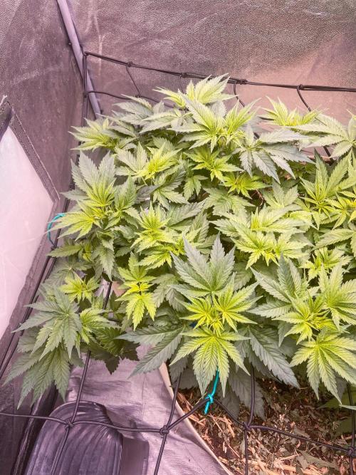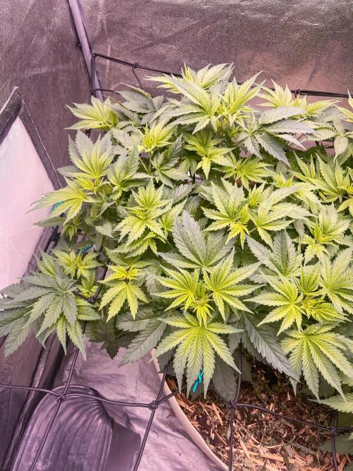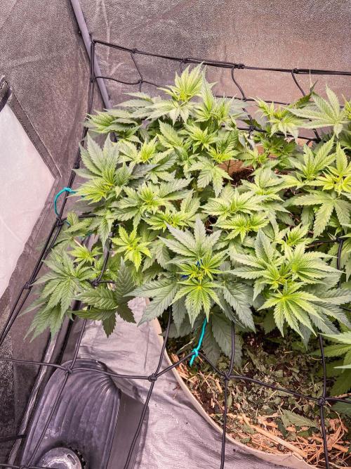 After the topping, she’s begun spreading out nicely helped by the LST and SCROG training, opening up her structure for even light and airflow