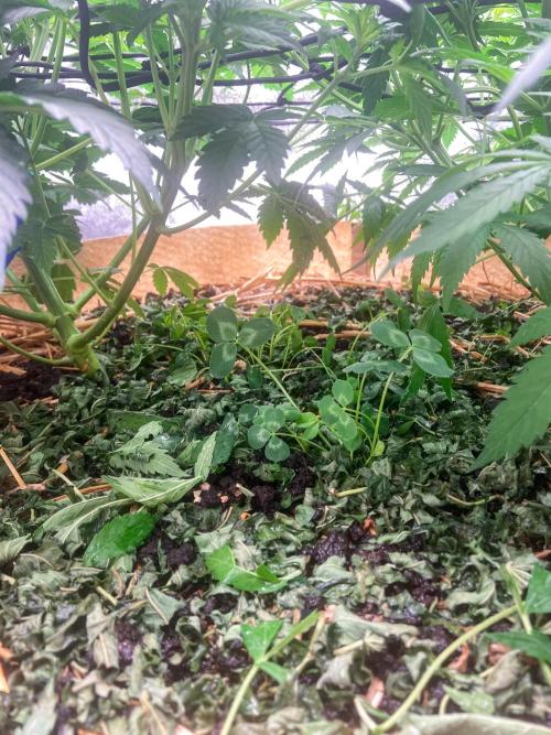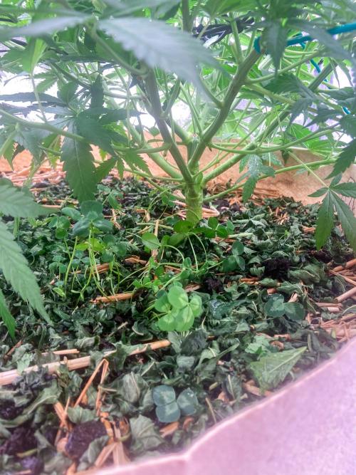 I enriched the living soil with a top dress mix of worm castings, malted barley, neem, kelp, bat guano, basalt and biochar, followed by a good worm tea watering. The soil life exploded, clover regrowth, plenty of visible activity, and strong turgor on every branch.