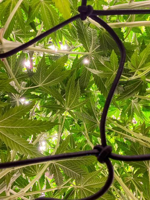 ElNass This week was all about fine-tuning the structure: some light training and careful canopy management under the SCROG net.