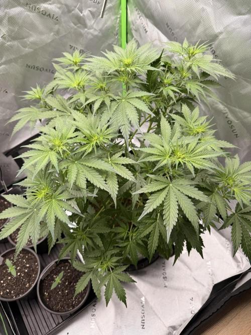 Stoney_Stark Alot of growth this week. At the beginning of the week on 10-5-2025 I gave her a 1/4gal with the above nutrients and a pinch (1/4tbs) of Recharge, she enjoys the Recharge. Then on 10-9-2025 (early in the morning) I fed her again with 1/4gal and the above nutrients with Microbe Life's Photosynthesis Plus and New Millenniums Ruby Fulvic and Carb-o-Naria. I'm a huge fan of New Millenium those guys are great. Then, on 10-10-2025 I started using the bottom wicking base from AC Infinity, I made a gallon of nutrient water with 3ml of SUPERthrive and everything listed above except the Recharge and the Photosynthesis Plus. I took a 1/4 of that gallon and added it to my sprayer with a pinch of Recharge to top water it and put the remaining 3/4 of the gallon into the base. I'm not sure how this is going to work. I'm using the bases with another grow that I'm doing but I'm using soil with them, and they are working great so I don't see why it wouldn't work with coco and salt-based nutrients. No training yet, she's staying pretty squat even though I've got the light about 3ft above her, the way she looks she's going to be a bushier style plant, but she isn't stretching just yet. 2 weeks in and no signs of flowering yet but usually I get about 3-4 weeks before she's starts to flower when I run autos.