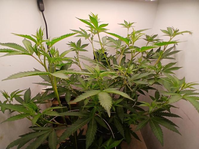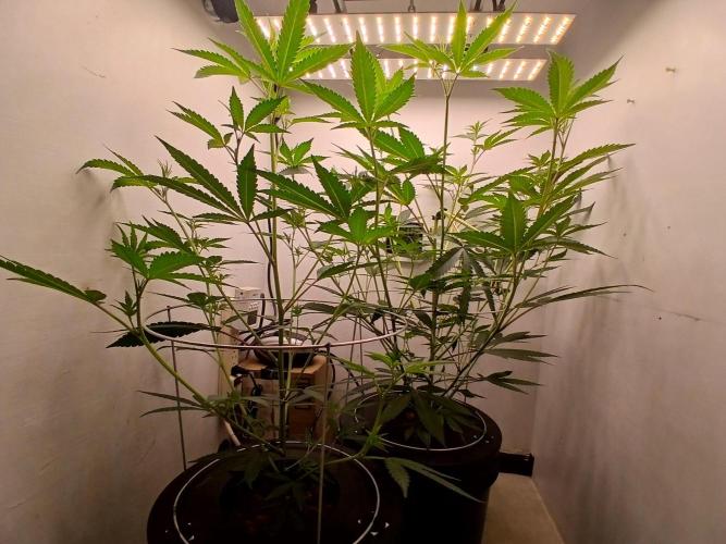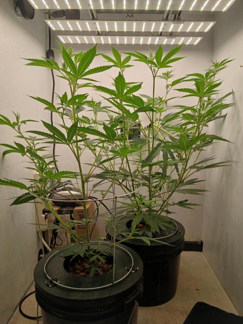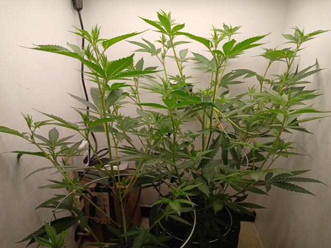 Thundrfuk Alright, here we go. They have more than doubled in height so far. I super cropped the bigger one only hoping she wont stretch too much more? These girls are beasts with strong side branches and low leaf ratio. Just trying to keep things under control. Most people have issues, its the opposite for me, they grow like crazy! Mother plant is doing great as well, see you next week. 👊