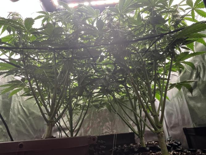 This time I’m trying to be really surgical with light and temperature management. The canopy has become very dense, and I actually like it that way — it looks beautiful — though I’m wondering if some defoliation is necessary. I’ve done a little here and there, but I don’t want to overdo it.