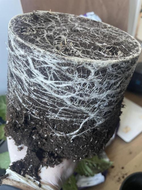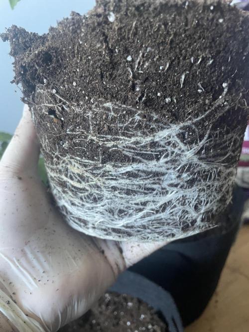 The girls have clearly outgrown their 3L pots, so on day 20 we transplanted them. As you can see in the pics, root development over the past two weeks has been great - solid white fuzz everywhere