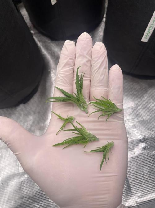 Following the same approach we used with Blueberry Cupcake, germination was done using the water + Root Riot + propagator method. From five seeds, four successfully sprouted, and we will be selecting the two most uniform plants to continue with.