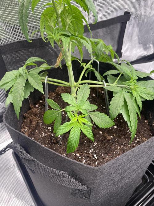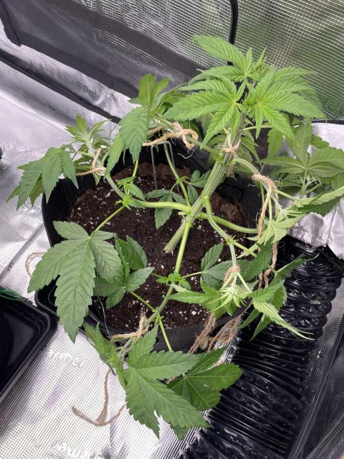 Qutro We’ve wrapped up another exciting week. The main focus was on stopping vertical growth and triggering some serious bushiness. For that, we used garden ties and tarp clips, working our way around the main stem and gently bending the branches out symmetrically. They look a bit weird at this stage, but it’s all about making sure the secondaries get plenty of light right now.