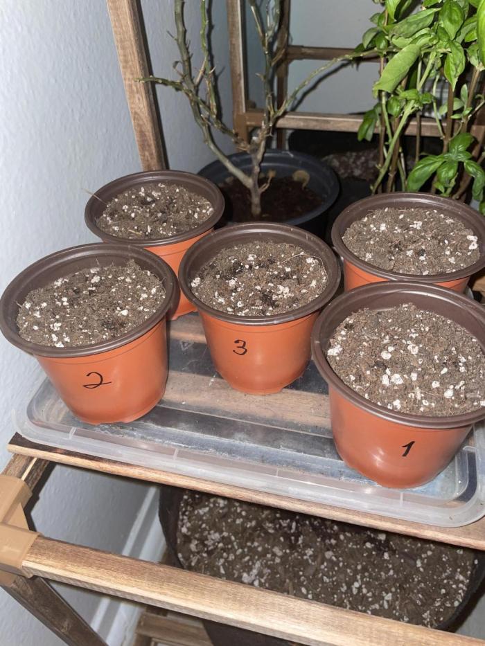 Mrgeek 09/25 shot glass germination w/ peroxide 09/26 planted w/ mycorrhiza